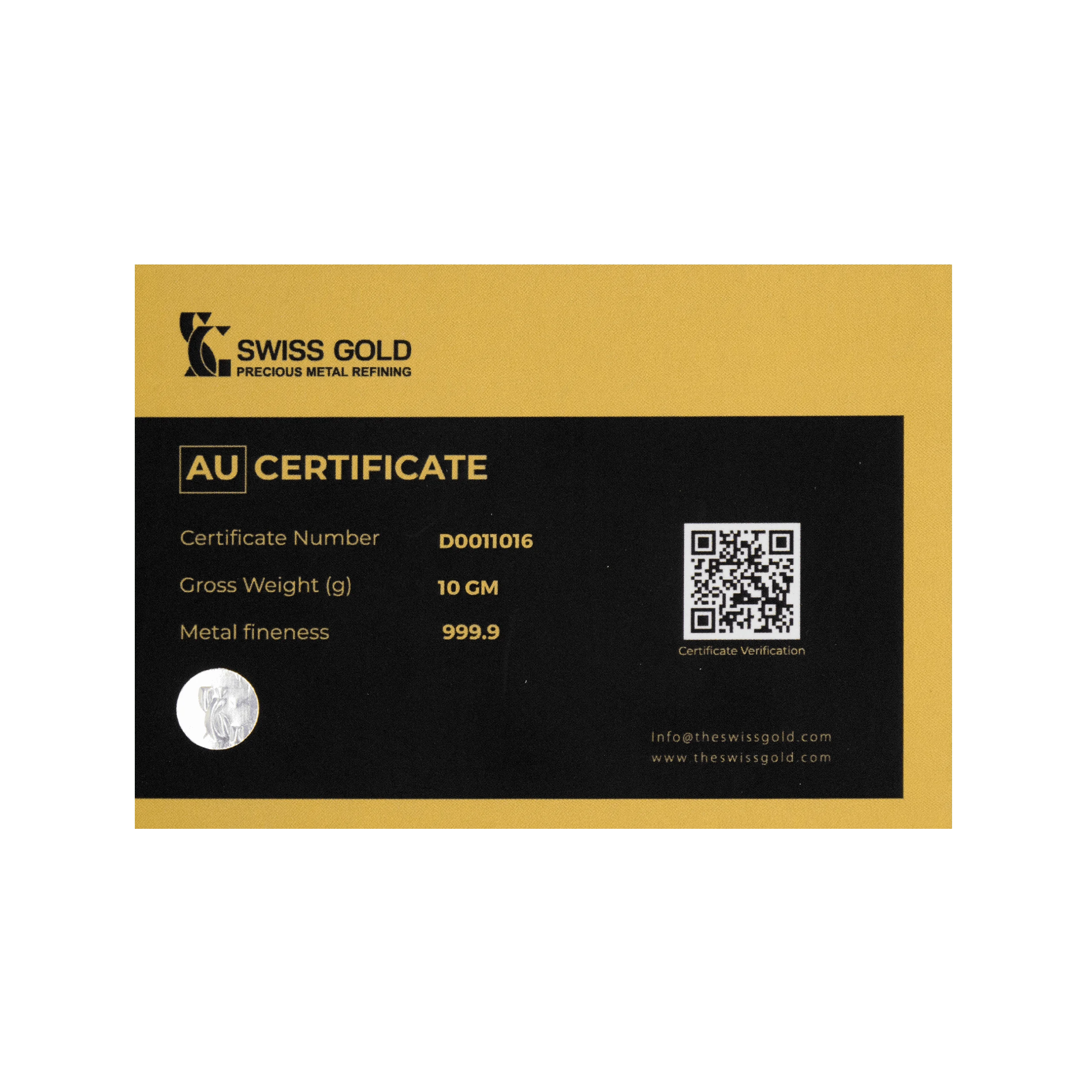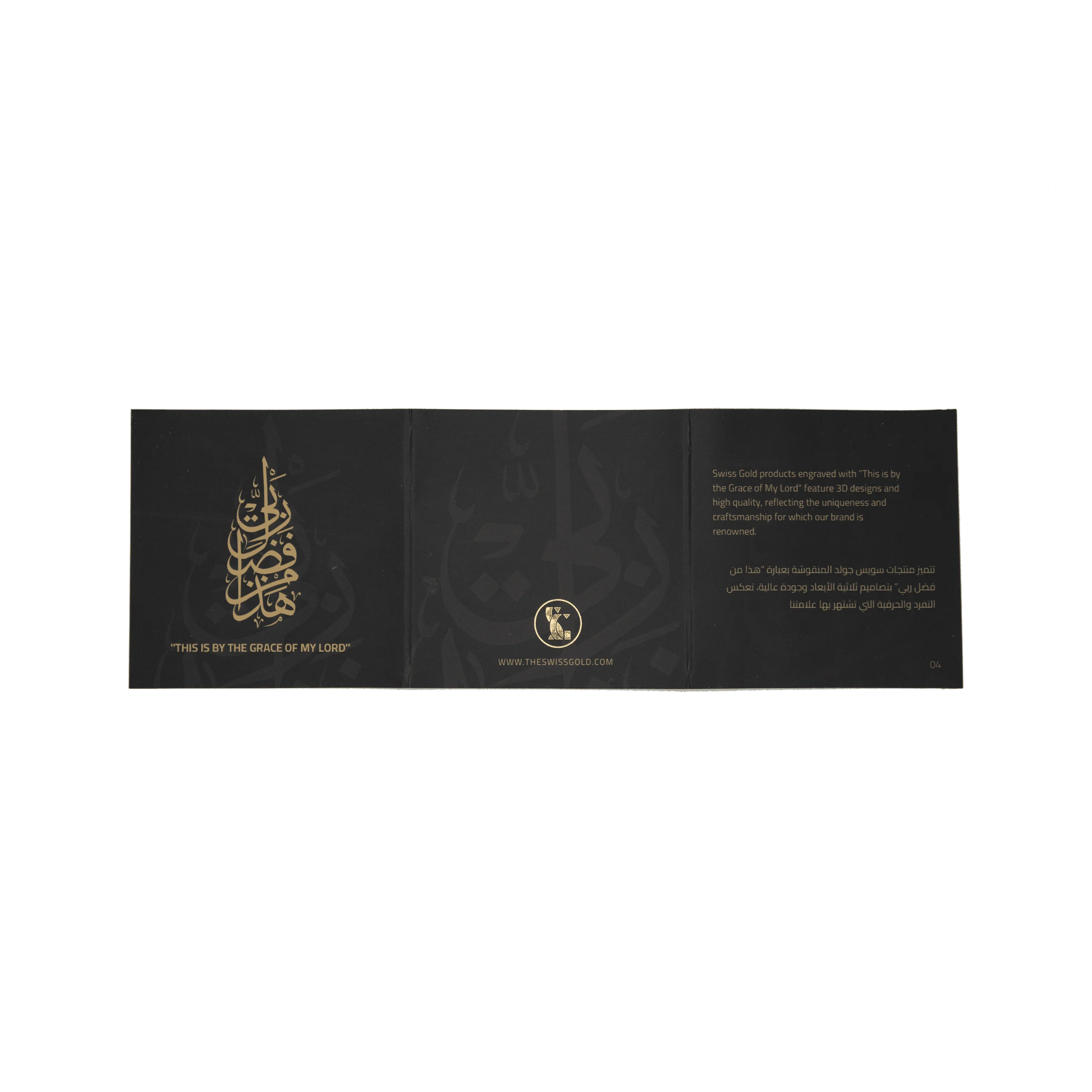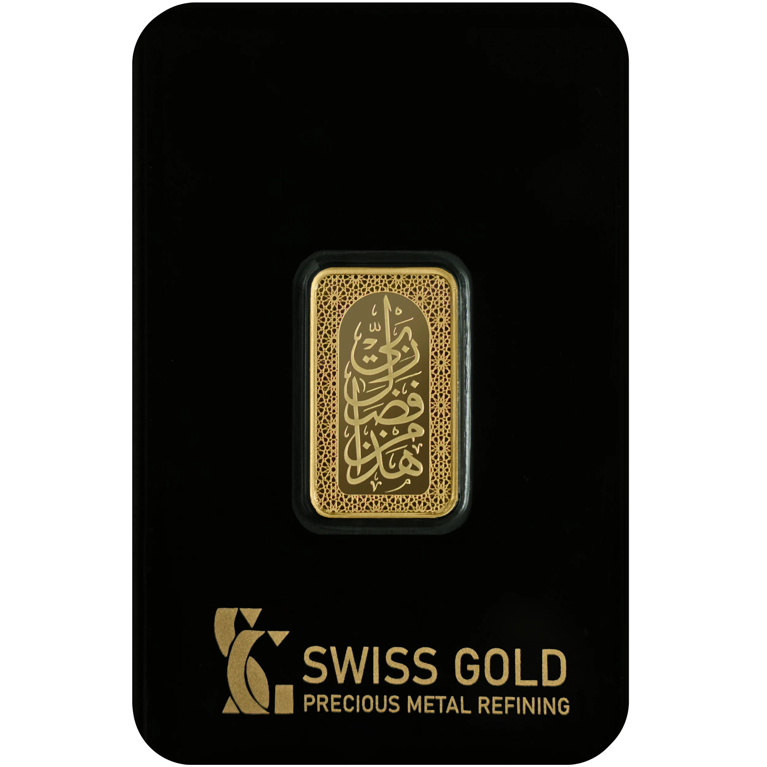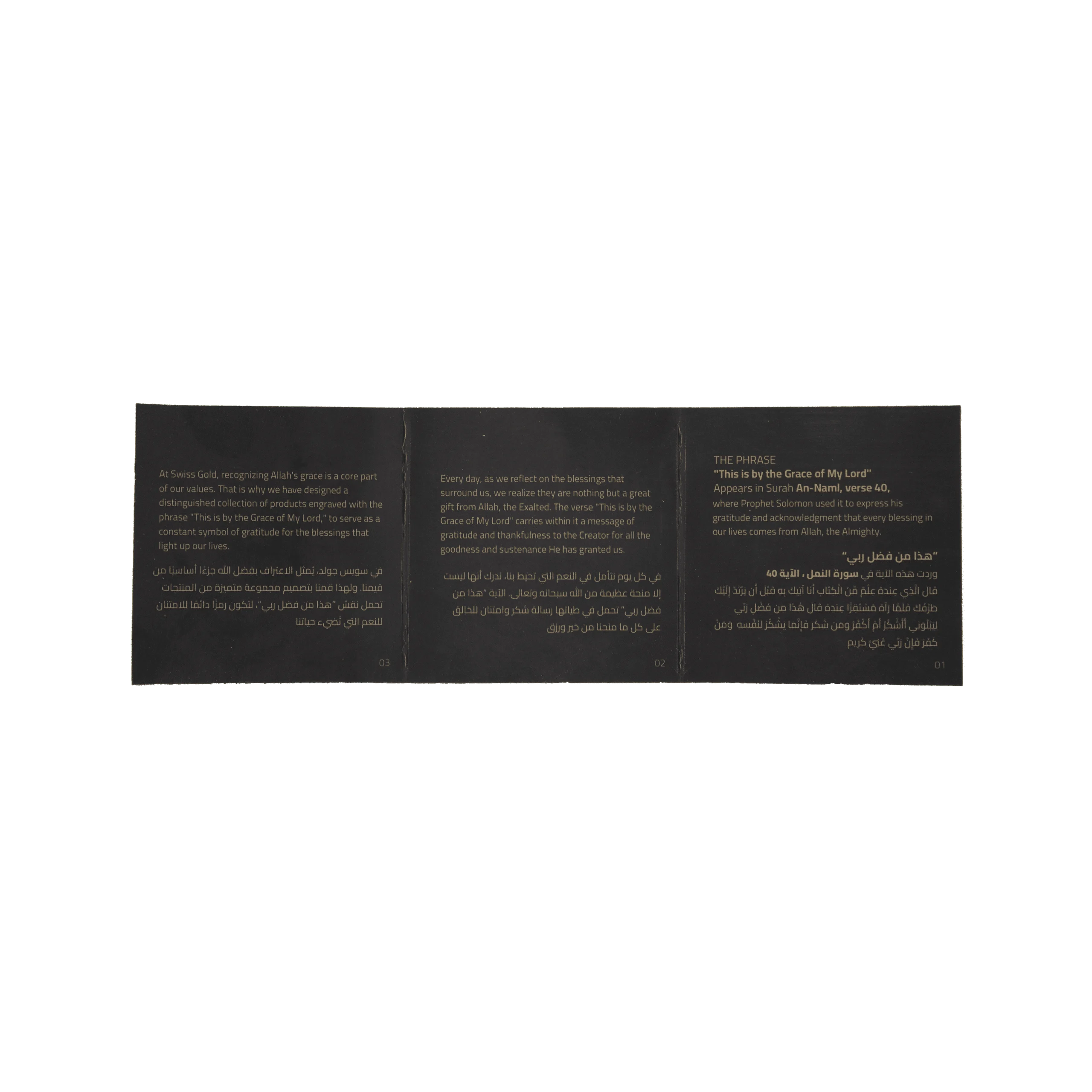 This 10g gold ingot, made from 999.9 fine gold, carries the inscription “This is by the grace of my Lord,” making it a special choice for both faith and finance. Created to Swiss quality standards, each piece comes with certification, smooth packaging, and seal protection. A refined option for saving or meaningful gifting.